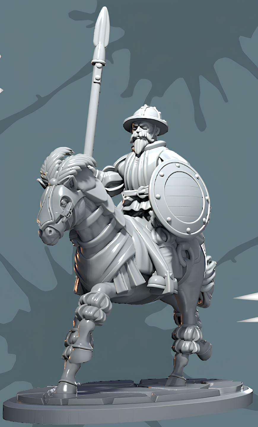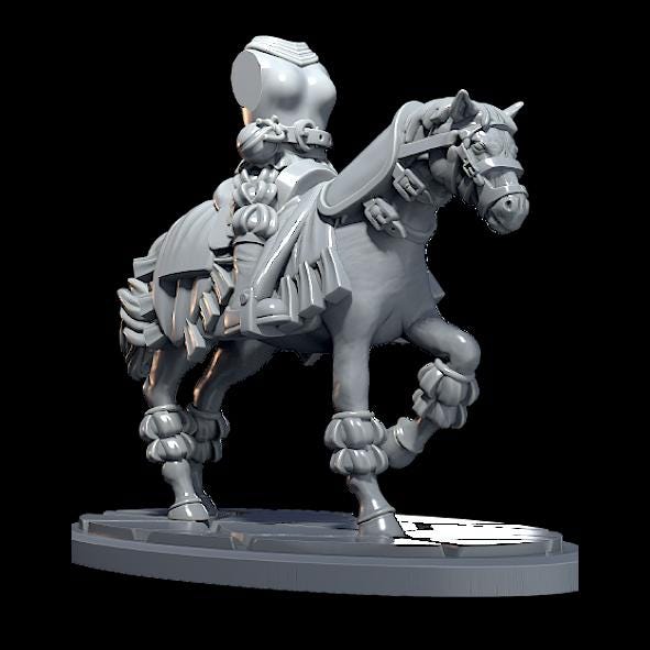 Available in both 28mm and 32mm scale. Includes the oval resin texture base shown in the images, or a plain black plastic cavalry base. By default, we will include the resin base.