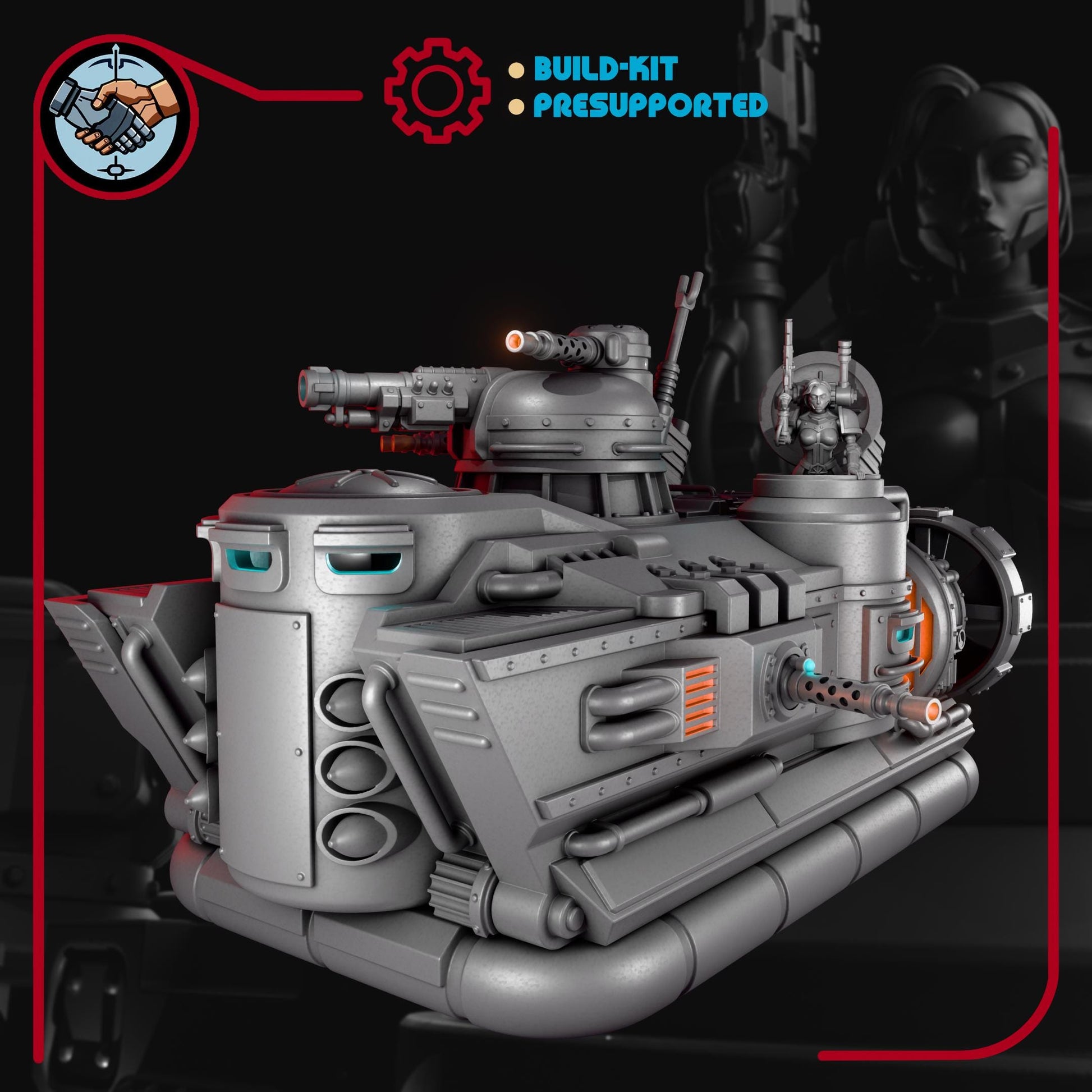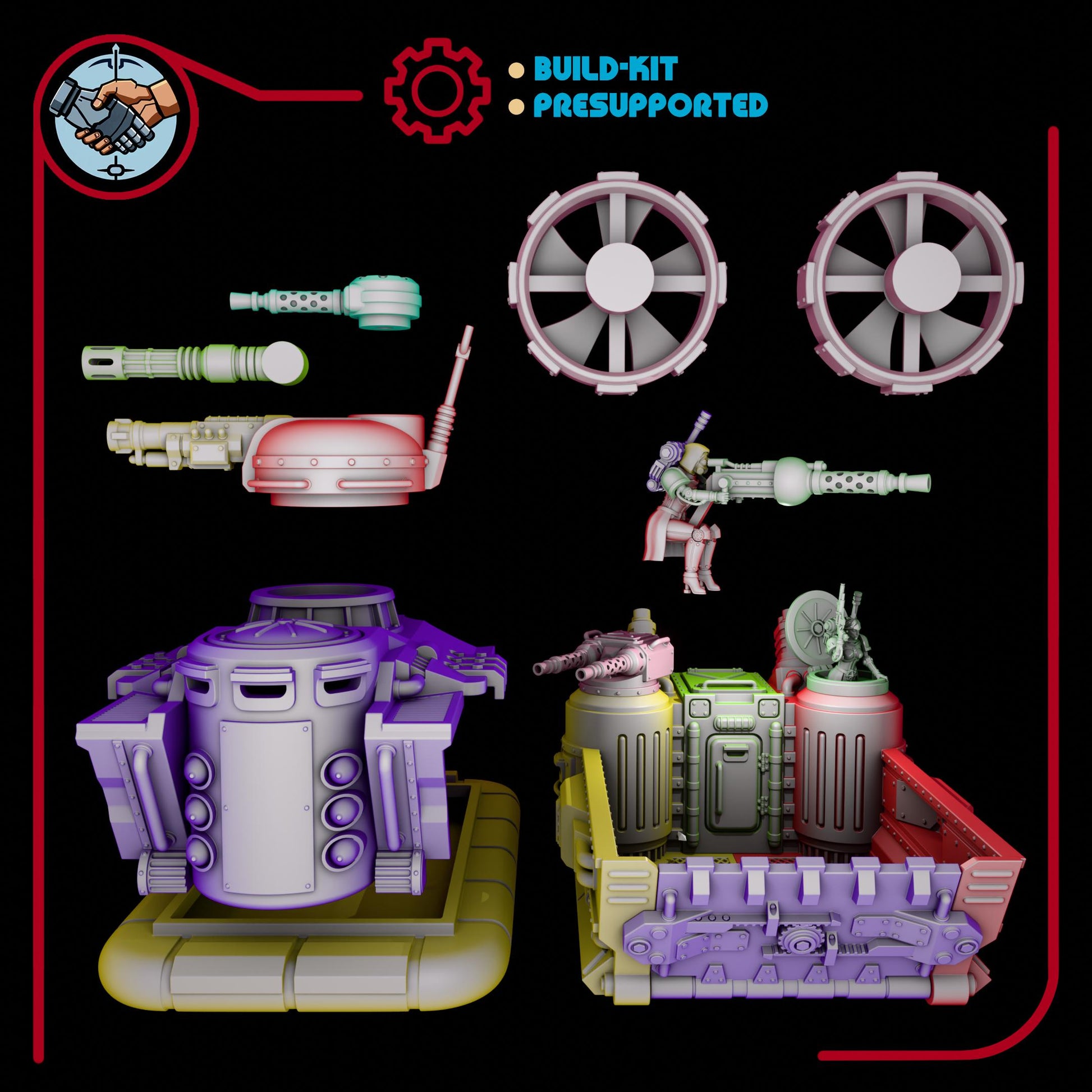 Both variants are protected by an array of heavy machine guns, and commanded by a Tech Guard ace wired directly into the machine's targeting system. This is a perfect addition for bolstering your Tech Cult's armored forces in scifi wargames such as Grimdark Future, FireFight, or even Heretic Civil War.